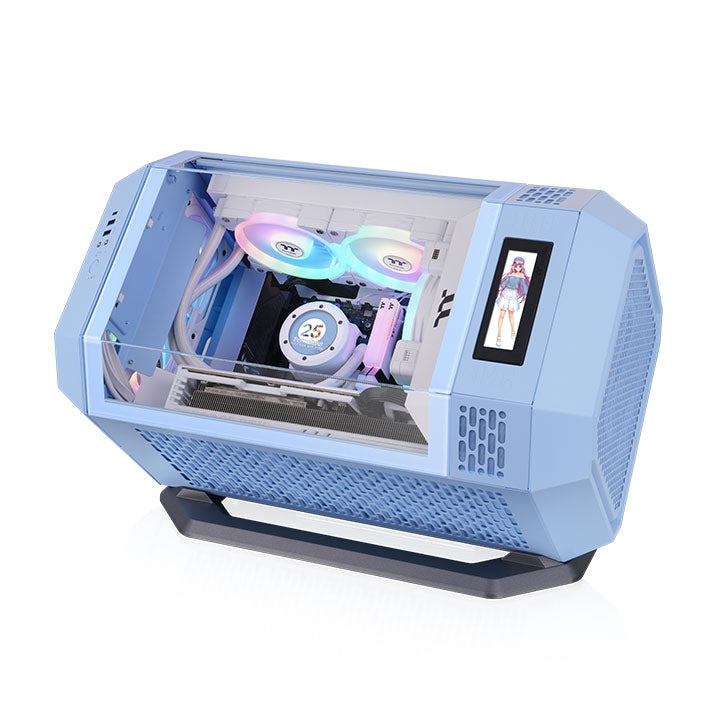 The Chassis Stand Kit for The Tower 250 Hydrangea Blue includes a bottom cover and a display stand, giving users another option to display their Tower 250 Hydrangea Blue horizontally for easy case customization and a unique viewing experience.