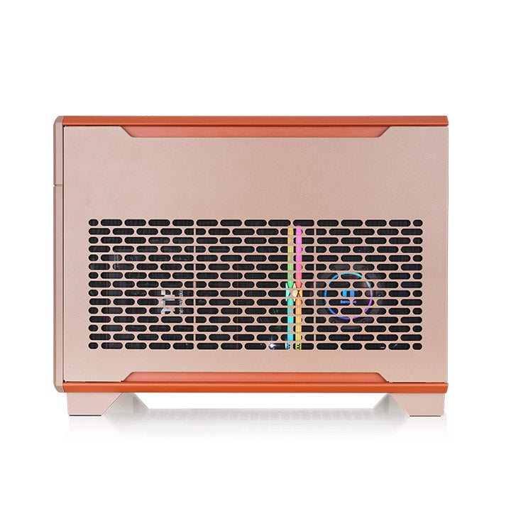 The TR100 Gravel Sand Mini Tower Chassis is a compact, dual-chamber, Mini-ITX case that is designed for those who demand performance and portability. The dual-chamber design positions the mini-ITX motherboard and SFX PSU in the right chamber, with the graphics card in the left, connected via a PCIe 4.0 riser cable. It supports two 120mm/140mm top fans and up to a 280mm AIO for cooling, plus two 2.5” SSDs, one in each chamber. All panels are removable and well-ventilated for optimal cooling and an easier build. To make it more visual appealing, a separately sold 3.9" LCD Screen Kit is also an option. Additionally, the separately sold suitcase allows users to carry the PC case and a complete gaming setup with them!