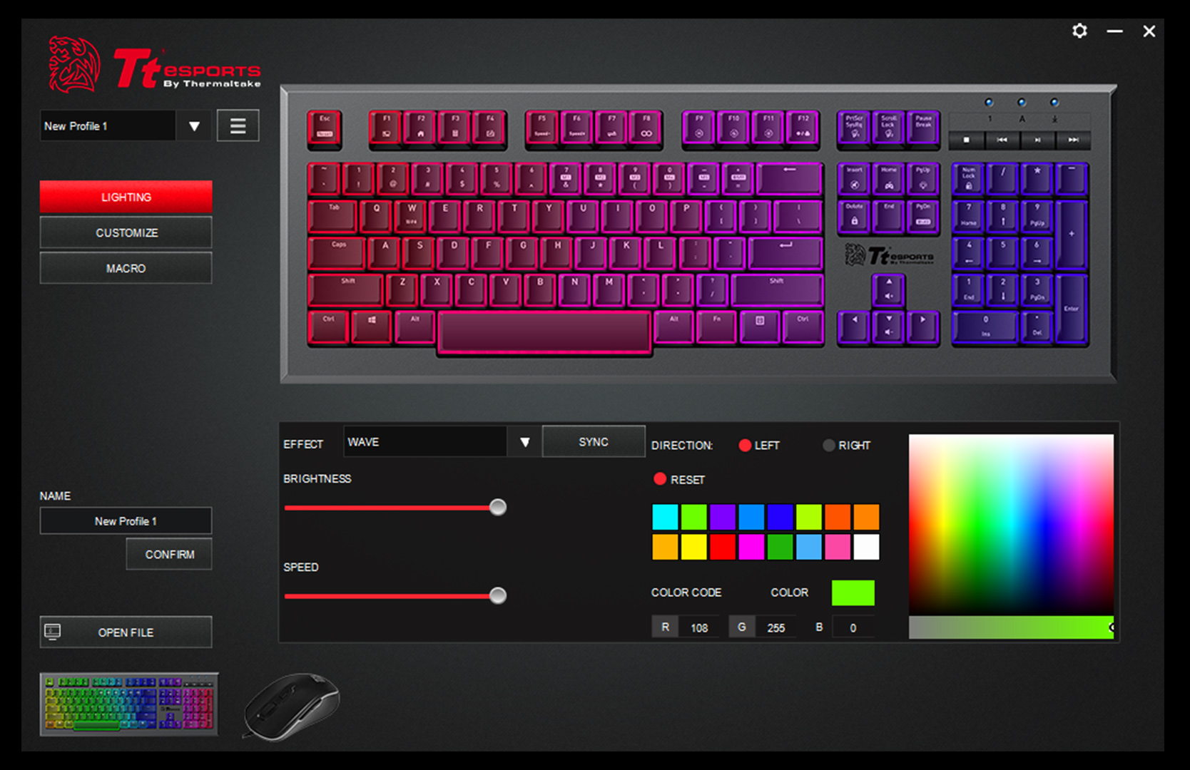 keystrokes to a single key and change backlighting effects with intuitive keyboard