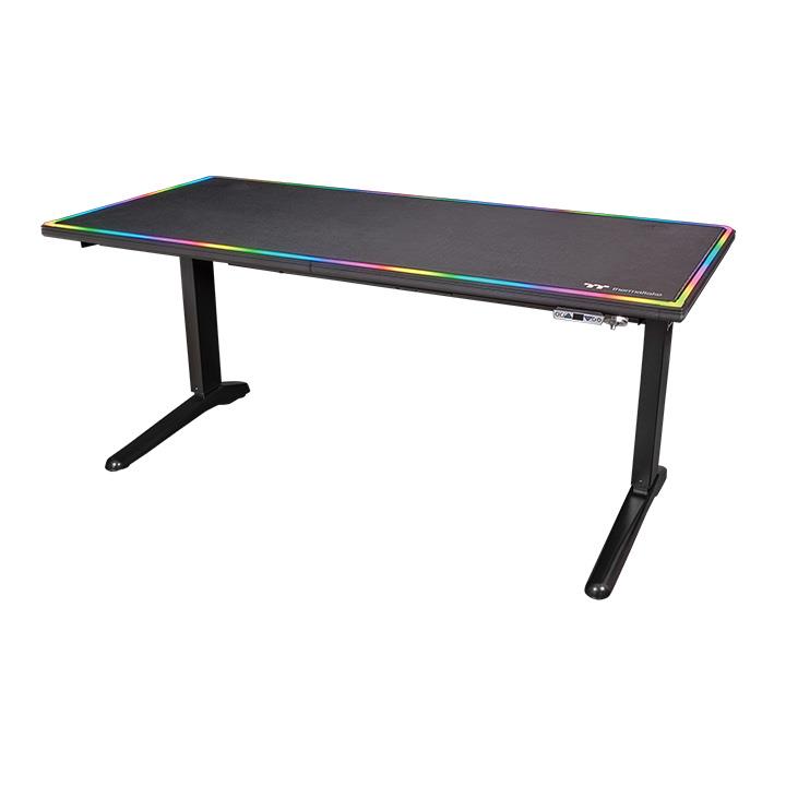 Level 20 BattleStation RGB Gaming Desk is Thermaltake’s electric height-adjustable gaming desk with full mousepad surface and software controllable 16.8 million colors lighting strips. Gamers can switch lighting effects via iTAKE gaming engine and synchronize with TT RGB PLUS products. Level 20 BattleStation RGB Gaming Desk also offers exceptional functionality, gamers can adjust the heights of the gaming desk electronically to sitting or standing positions. In addition, the large full mousepad surface allows gamers to set up multi monitor gaming system. Level up your professional gaming experiences with Level 20 BattleStation RGB Gaming Desk!