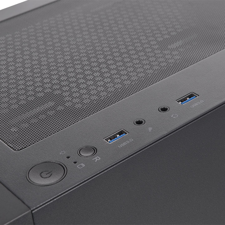 Two USB 3.0 ports, one HD Audio and one reset button are placed on the top panel to grant direct access when needed.