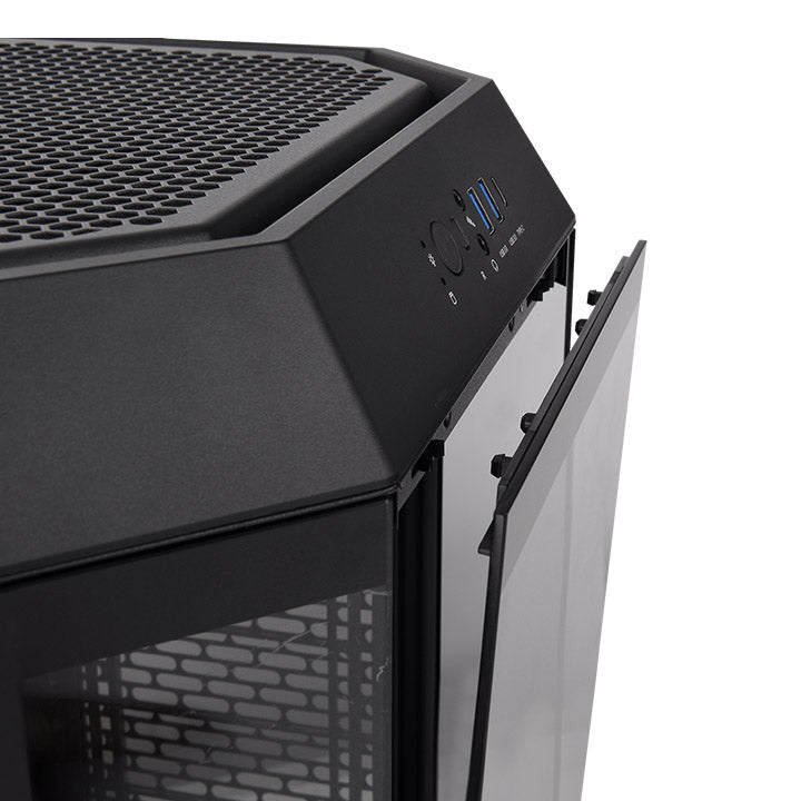 The Tower series has been iconic for its vertical body designs and the Tower 300 follows in those footsteps. However, with its new octagonal prism design we were able to not only increase the viewing areas for the components inside but also allow for better airflow and bigger cooling options too. This gives the Tower 300 the classic looks of its predecessors but with even better performance and updated styling.