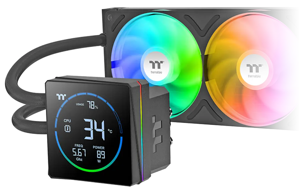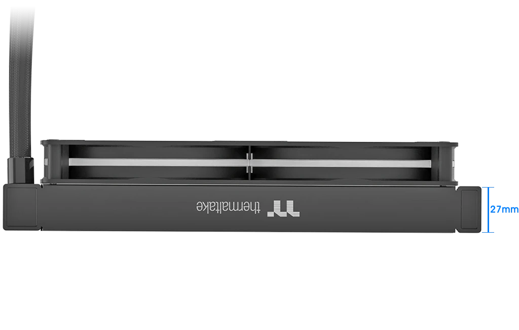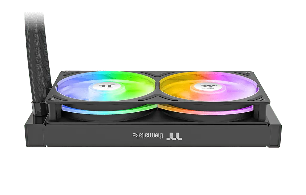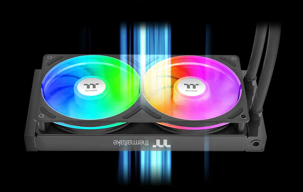 TH240-S V3 ARGB Sync AIO Liquid Cooler has a powerful 240mm PWM fan module, a single-frame unit combining two 120 mm fans. Each fan provides an airflow of 85.29 CFM with 3.86 mm-H2O static pressure while maintaining a noise level of 37.8 dB-A, offering exceptional cooling performance for your system.